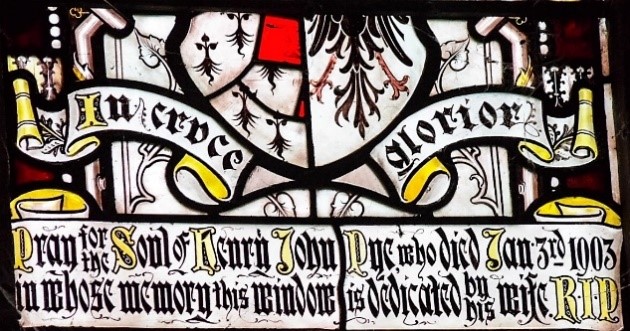 The inscription to the memorial to Henry Pye – former Rector of Clifton Campville, who converted to Catholicism and was the principal patron of Haunton Church